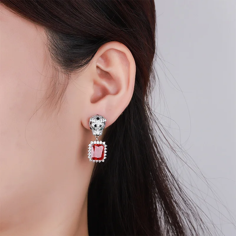 Product Name: XILIANGFEIZI High Quality Jewelry Copper Zircon Gemstone Fine Fashion Jewelry Crystal Animal Leopard Earrings