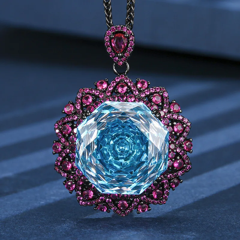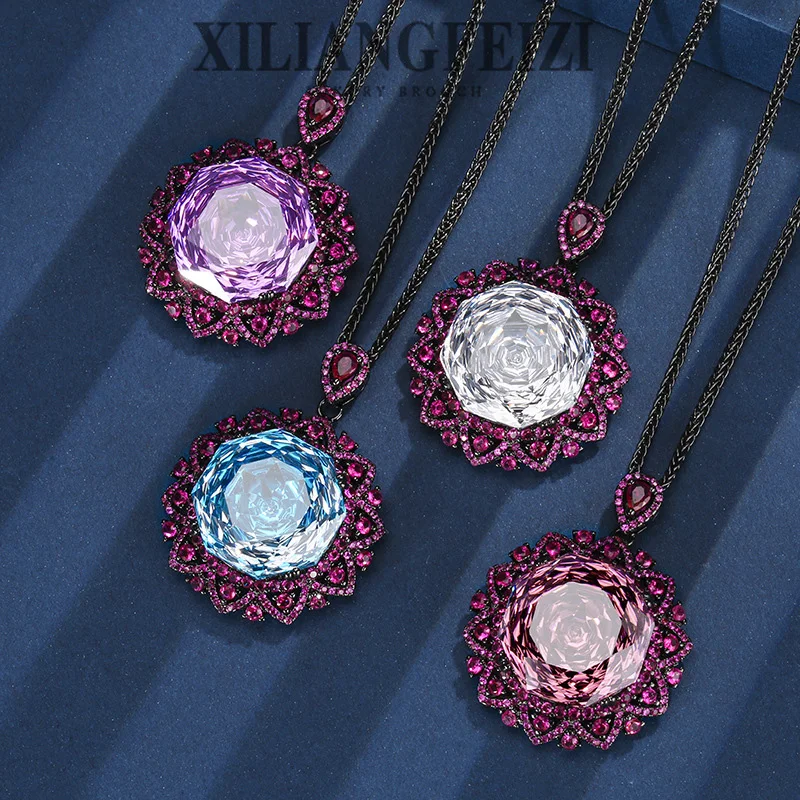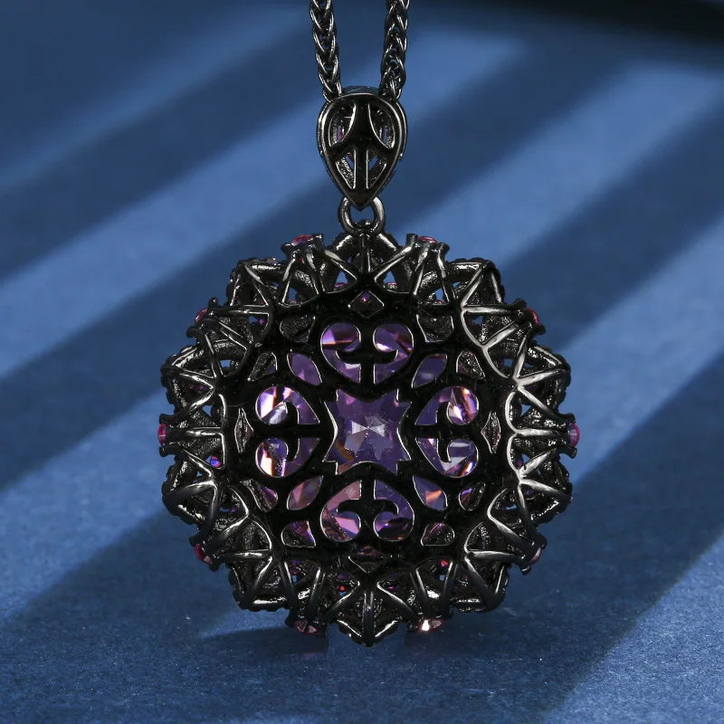 Product Name: XILIANGFEIZI High-quality Jewelry Copper Imitation Rose-cut Luxury Vintage Black Gold Pendant Necklace 18mm