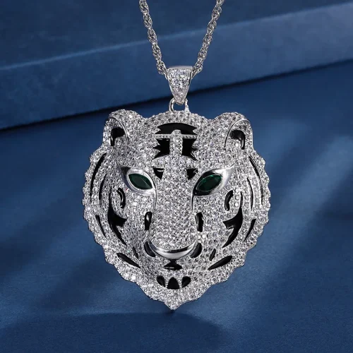 Product Name: XILIANGFEIZI Jewelry Copper Gold-plated European and American Fashion tiger Head Luxury Pendant Necklace Jewelry