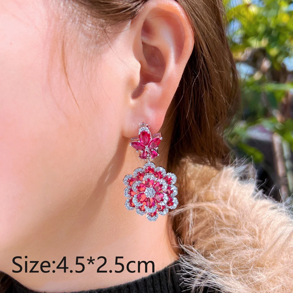 Product Name: XILIANGFEIZI S925 Silver Needle Light Luxury Niche Design Double-layer Floral Simulation Red Corundum Earrings Are Fashionable