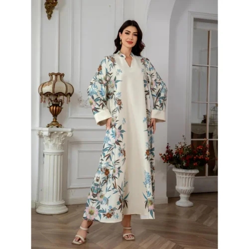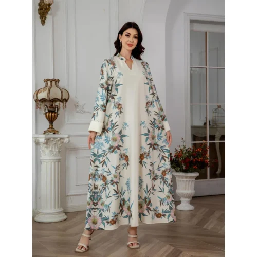 Product Name: Xinpai Women’s Modest Summer Abaya Dress Polyester Printing Floor Length One Size Fits All Anti-Static for Eid Celebration