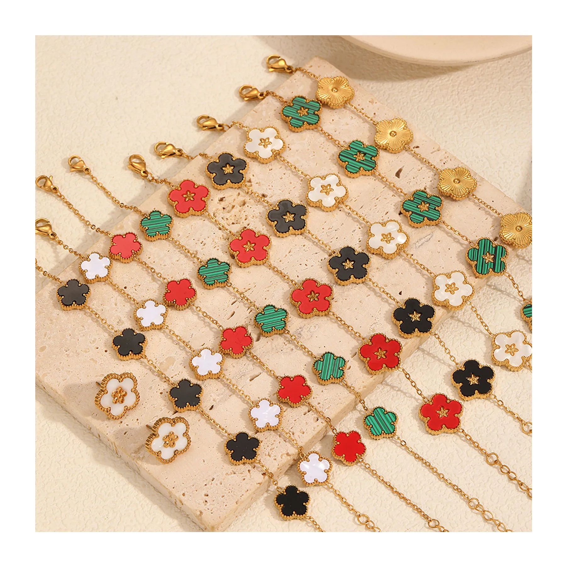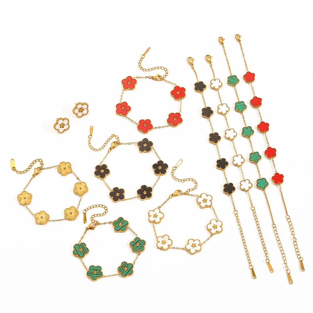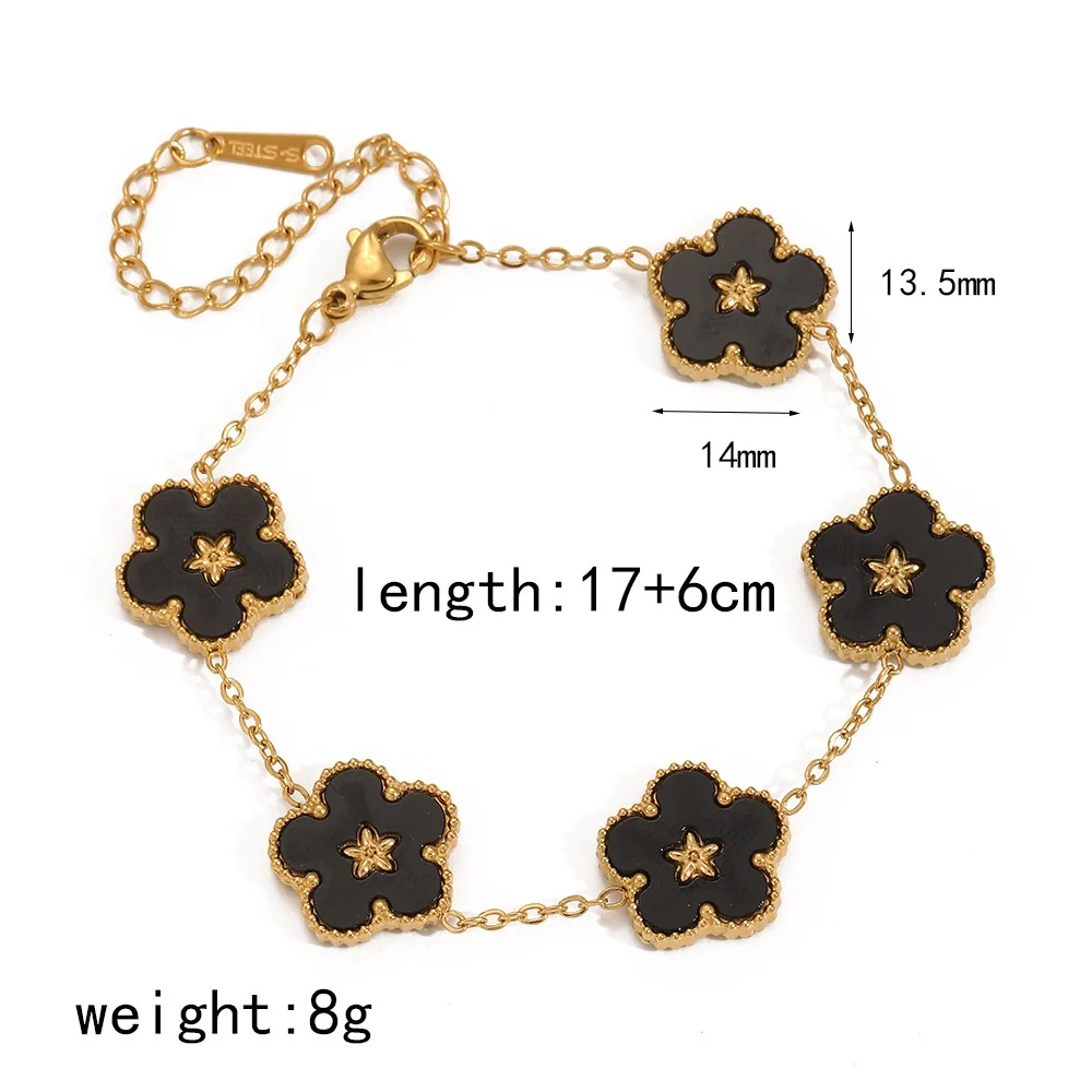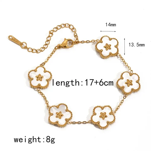 Product Name: XIXI Waterproof Tarnish Free Women Five Flower Colorful Shell 18k Gold Plated Stainless Steel Fashion Jewelry Chain Bracelets