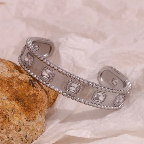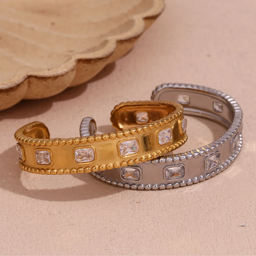 Product Name: XIXI Waterproof Vintage Acier Inoxydable Cuff Zircon 18K Gold Plated Stainless Steel Women Fashion Jewelry Bracelet Bangle