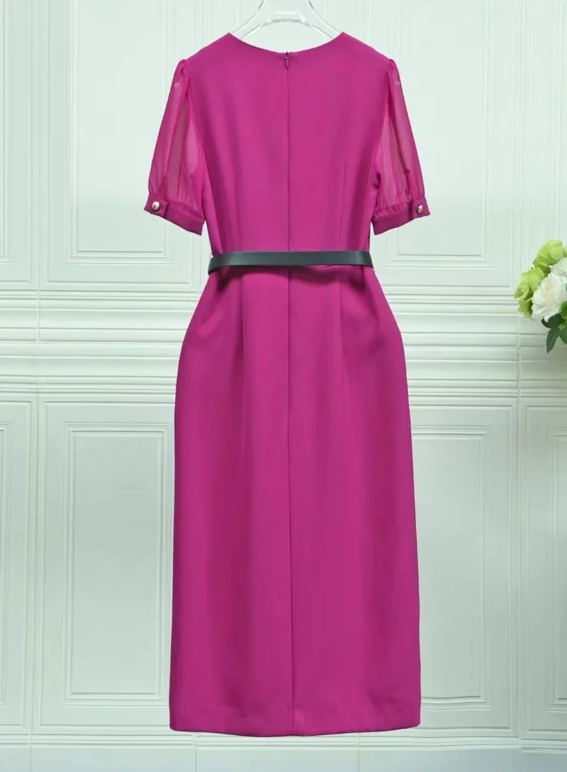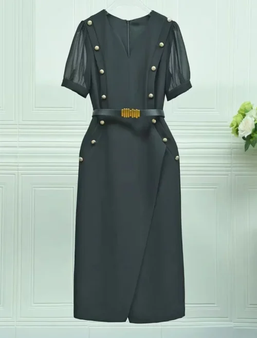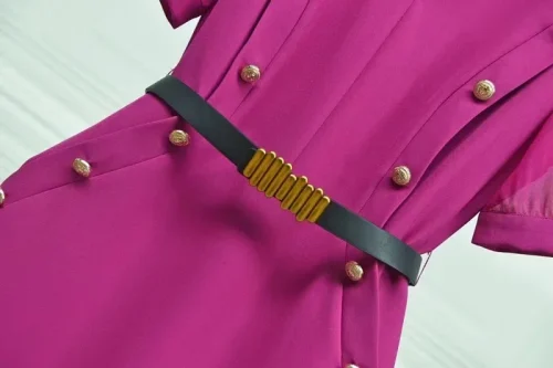 Product Name: XXL Bodycon Dress 2024 Spring Summer Fashion Design Vestido Women V-Neck Big Button Belt Deco Short Sleeve Pink Black Dress OL