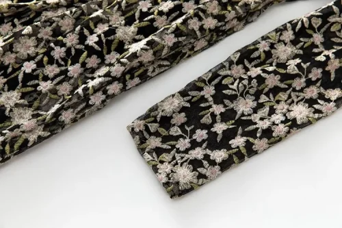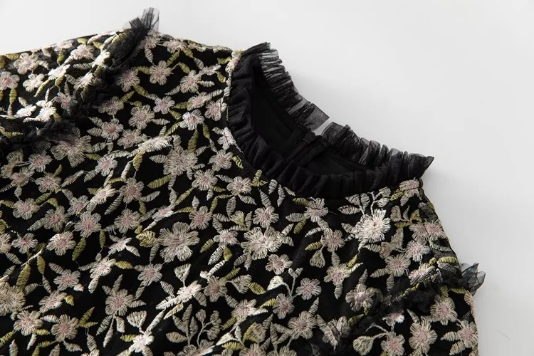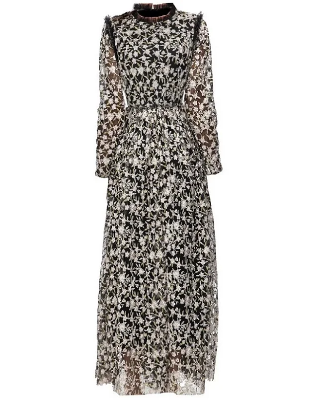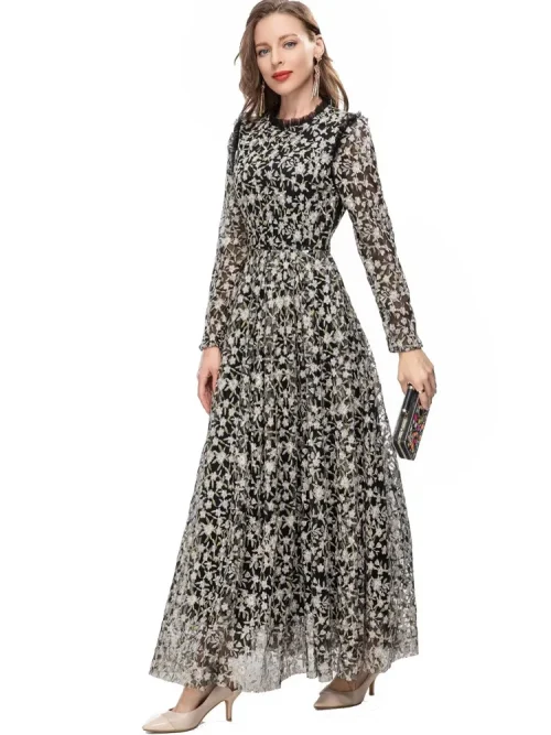 Product Name: XXL Long Evening Dress 2024 Autumn Winter Party Women Allover Exquisite Embroidery Lace Patchwork Long Sleeve Black Maxi Dress