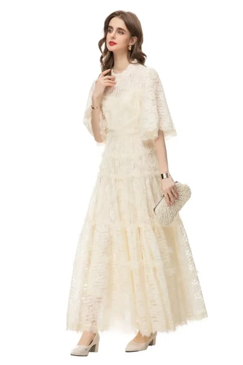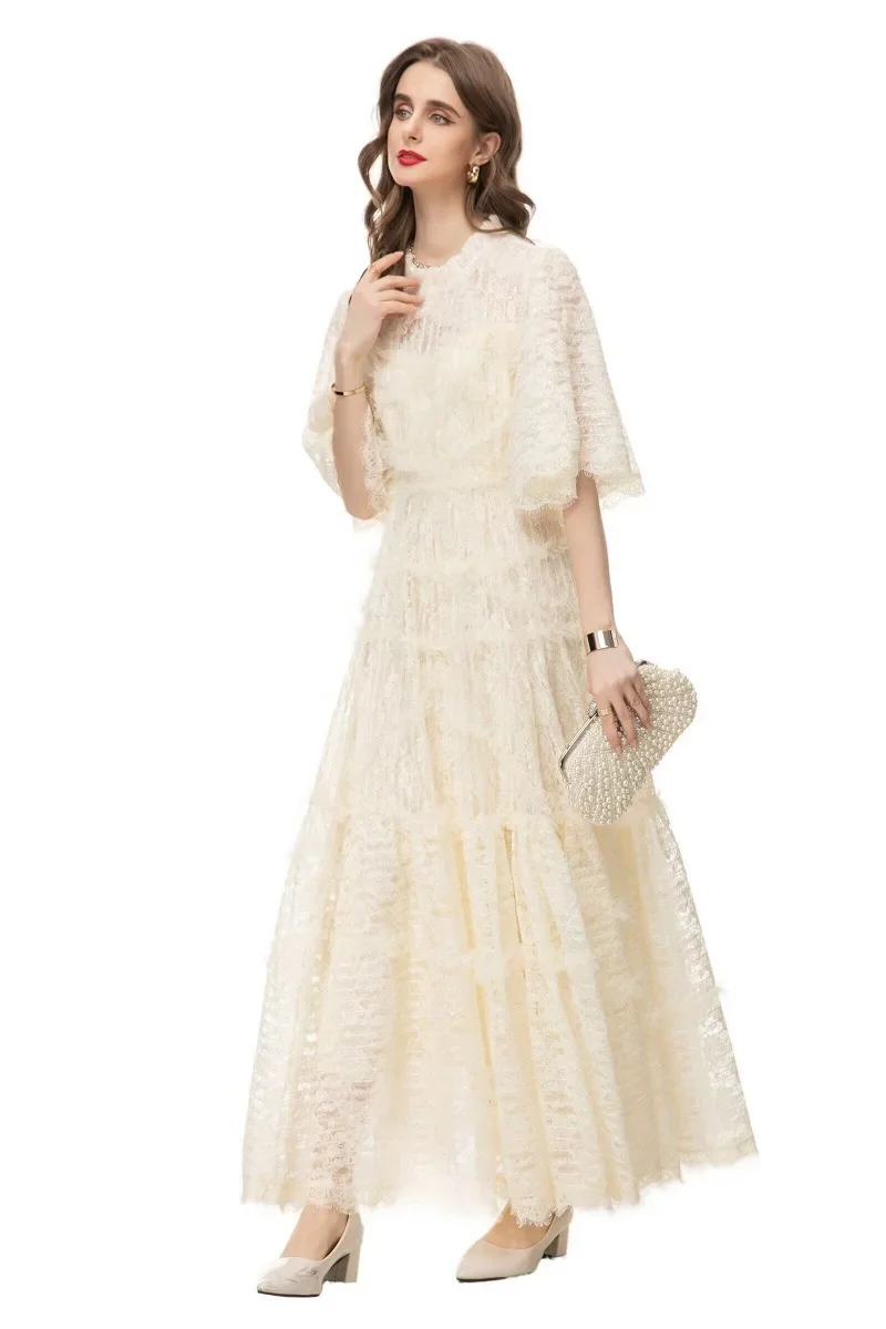 Product Name: Xxxl Lace Long Dress 2024 Spring Evening Party Women Allover Lace Flower Patterns Flare Sleeve Elegant Long Maxi Dress Occasions