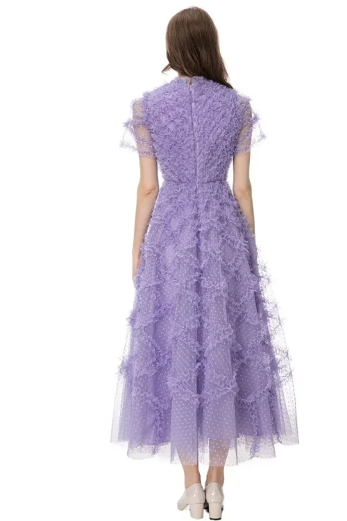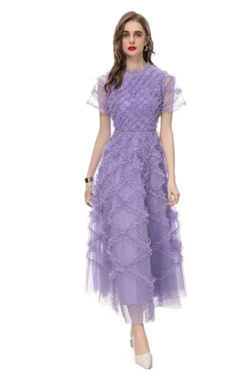 Product Name: XXXL Long Dress 2024 Spring Summer Party Special Occasion Women Polka Dot Print Allover Cascading Ruffle Flower Mesh Maxi Dress