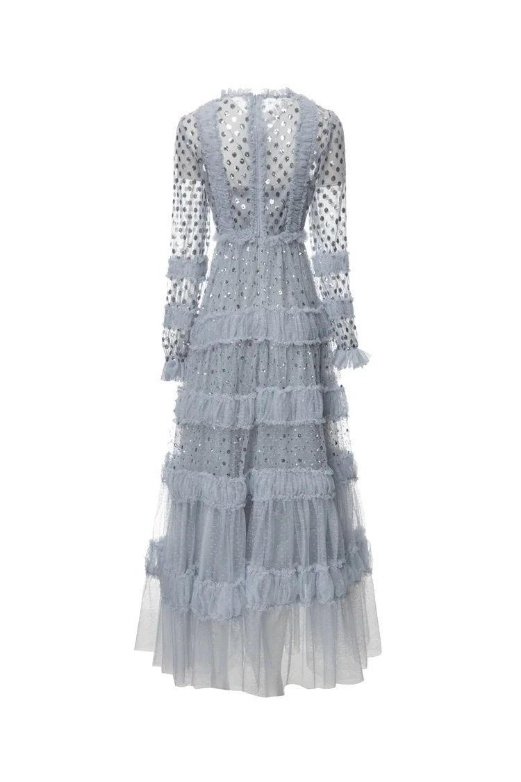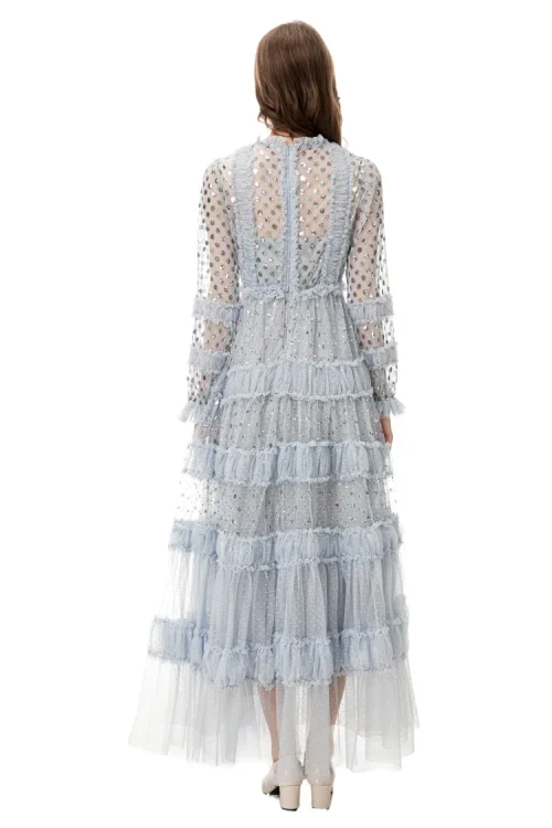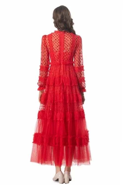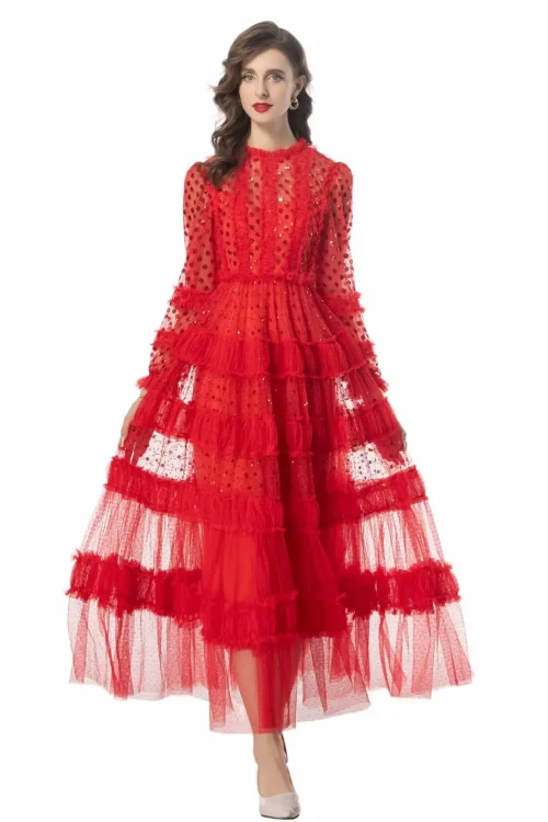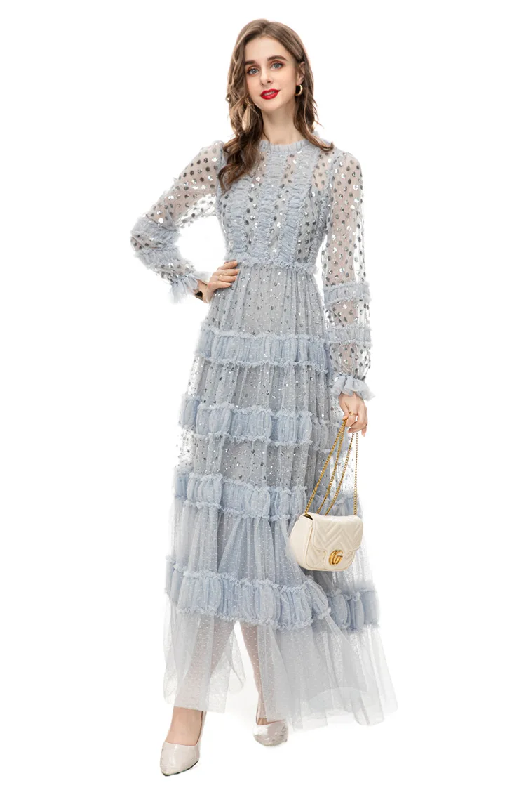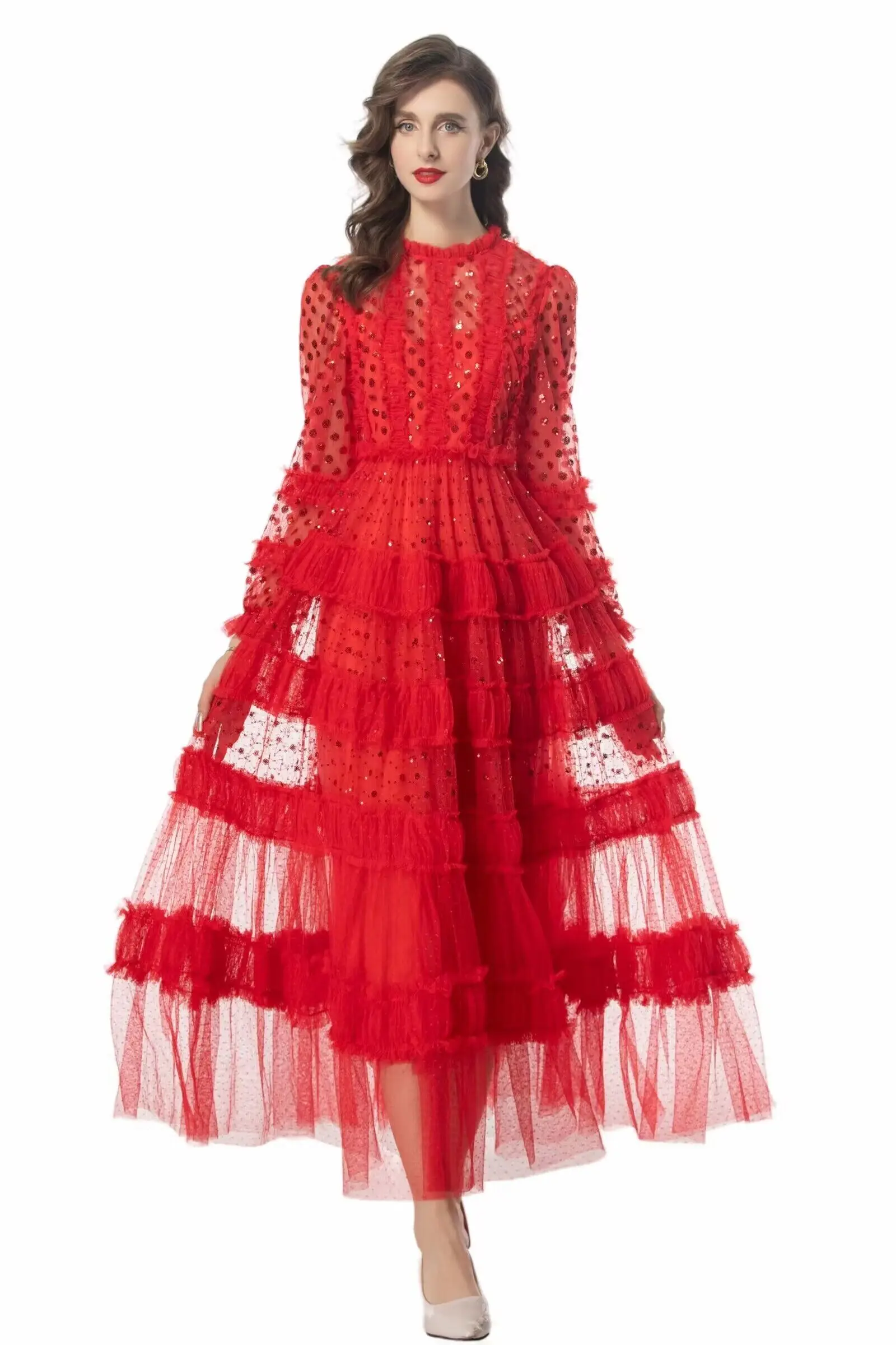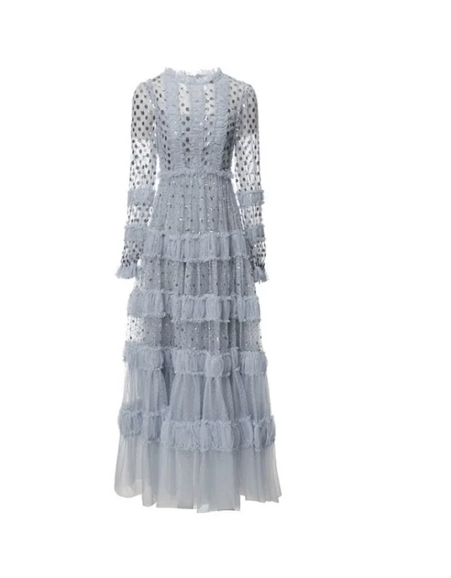 Product Name: XXXXL Long Party Women Dress 2024 Autumn Winter Wedding Women Allover Sequined Embroidery Lace Patchwork Long Grey Red Dress