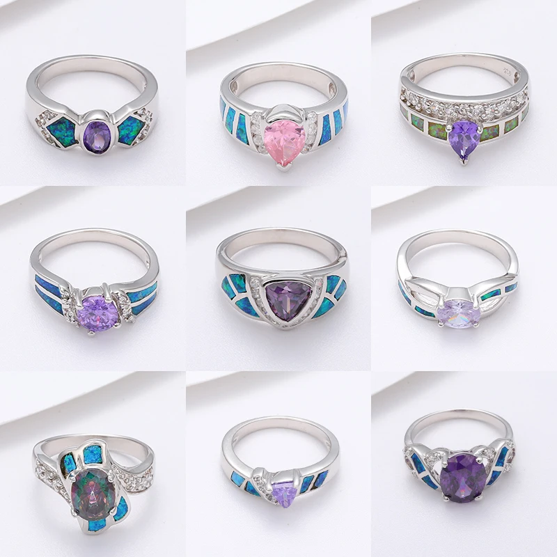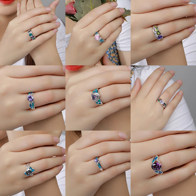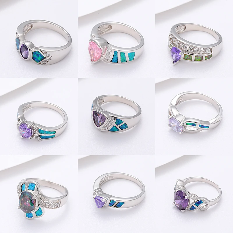 XYOP 925 Sterling Silver Opal Dazzling Rings Jewelry for Women Gift