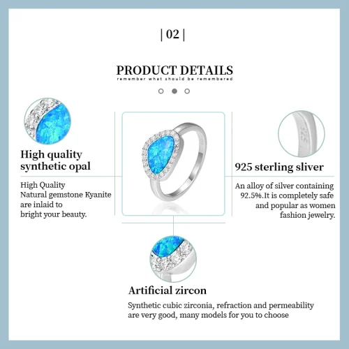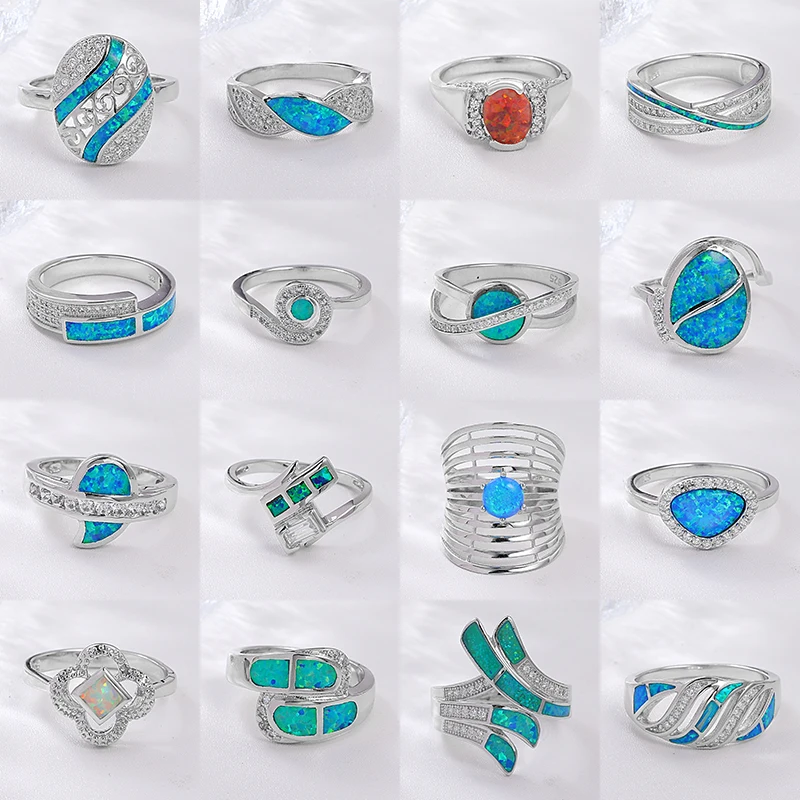XYOP Ladies Jewelry 925 Rings for Women Zircon Jewelry Sterling Silver Opal Crystal Classic Fashion Blue Trendy Gemstone Rings