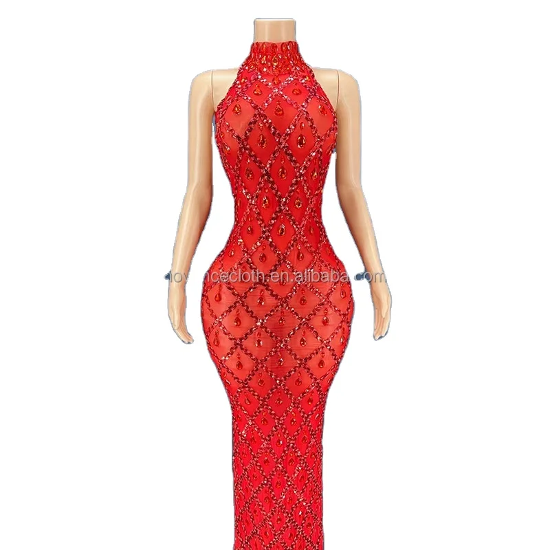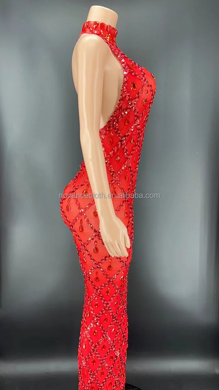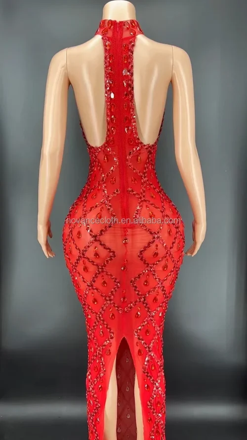 Y2360-E 2022 Women Clothing Vendor Sexy Backless Red Rhinestone Birthday Outfit Club Dresses for Mothers Day Suprises