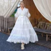 YAZ5269 2025 New Girl French Fashion V-neck White Mesh Long-sleeved Slimming Two-piece Dress