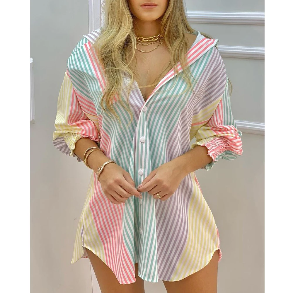 Product Name: Yb205-casual Dresses Spring Woman rainbow Dress Designer Clothes Shirt Blouses Frocks for Women Dresses