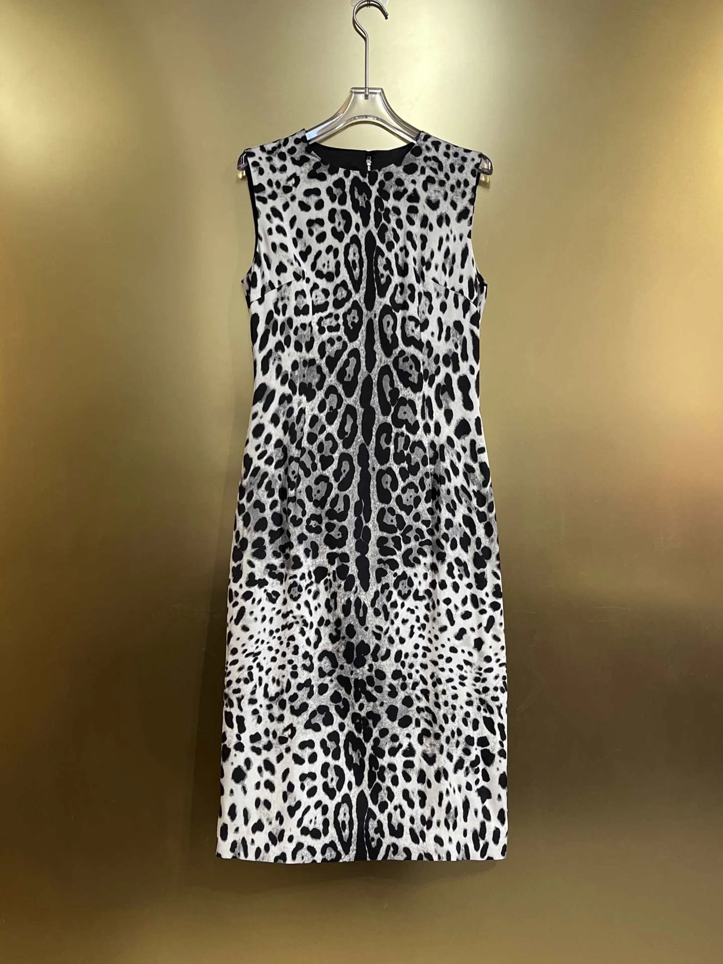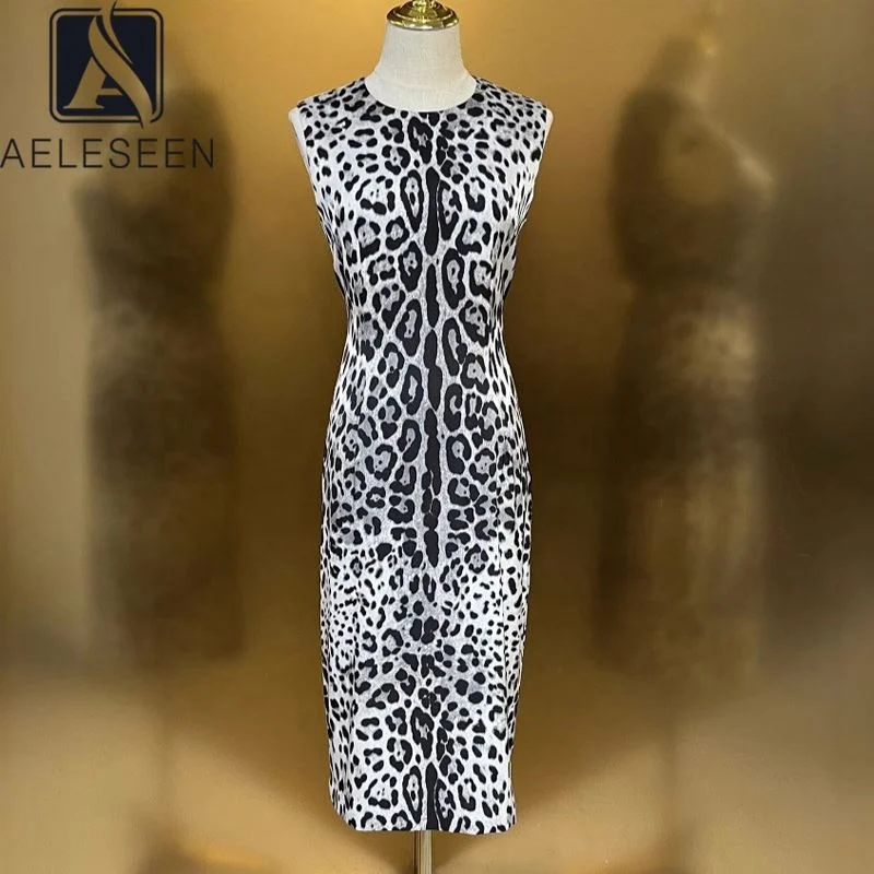Product Name: YC 100% Silk Summer Midi Dress Women Sicilian Sleeveless Slim Leopard Printed Pencil Vintage Vest Dress Female