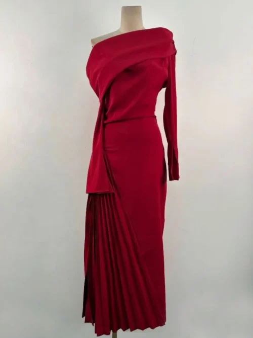 Product Name: YC 2025 Autumn New Women’s Elegant Dress Ankle-Length Slim High Waist Side Slit Diagonal Collar Pleated Casual Solid