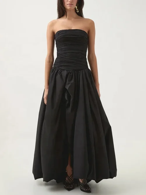 Product Name: YC 2025 Spring Summer Casual Dress Women Elegant Strapless Beautiful Long High Waist Slim Pleated Split Party Irregular