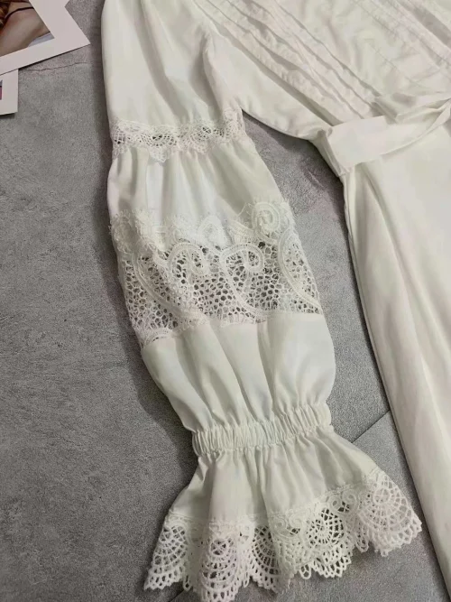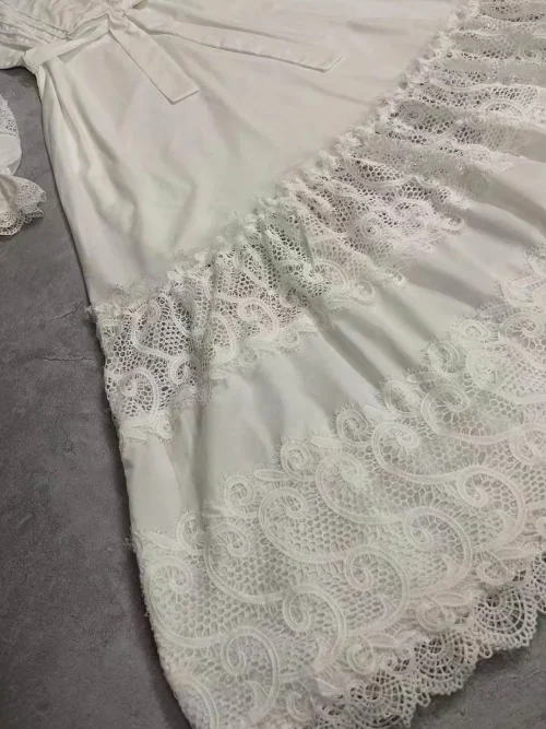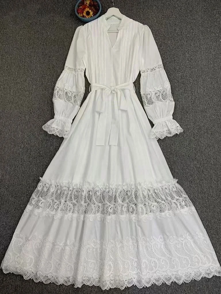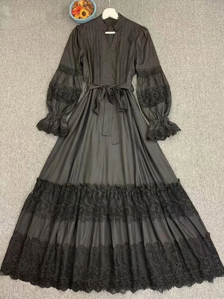 Product Name: YC Women’s Vintage Solid V-Neck Midi Dress Designer Fashion Lace Hollow-out Lantern Sleeves Flower Casual Back Maxi Party