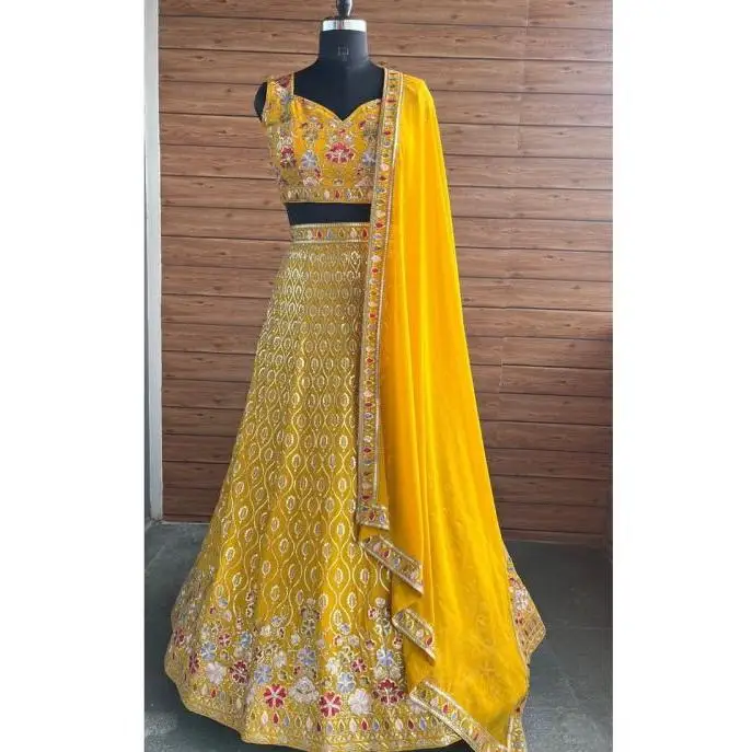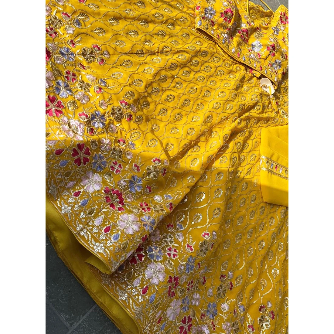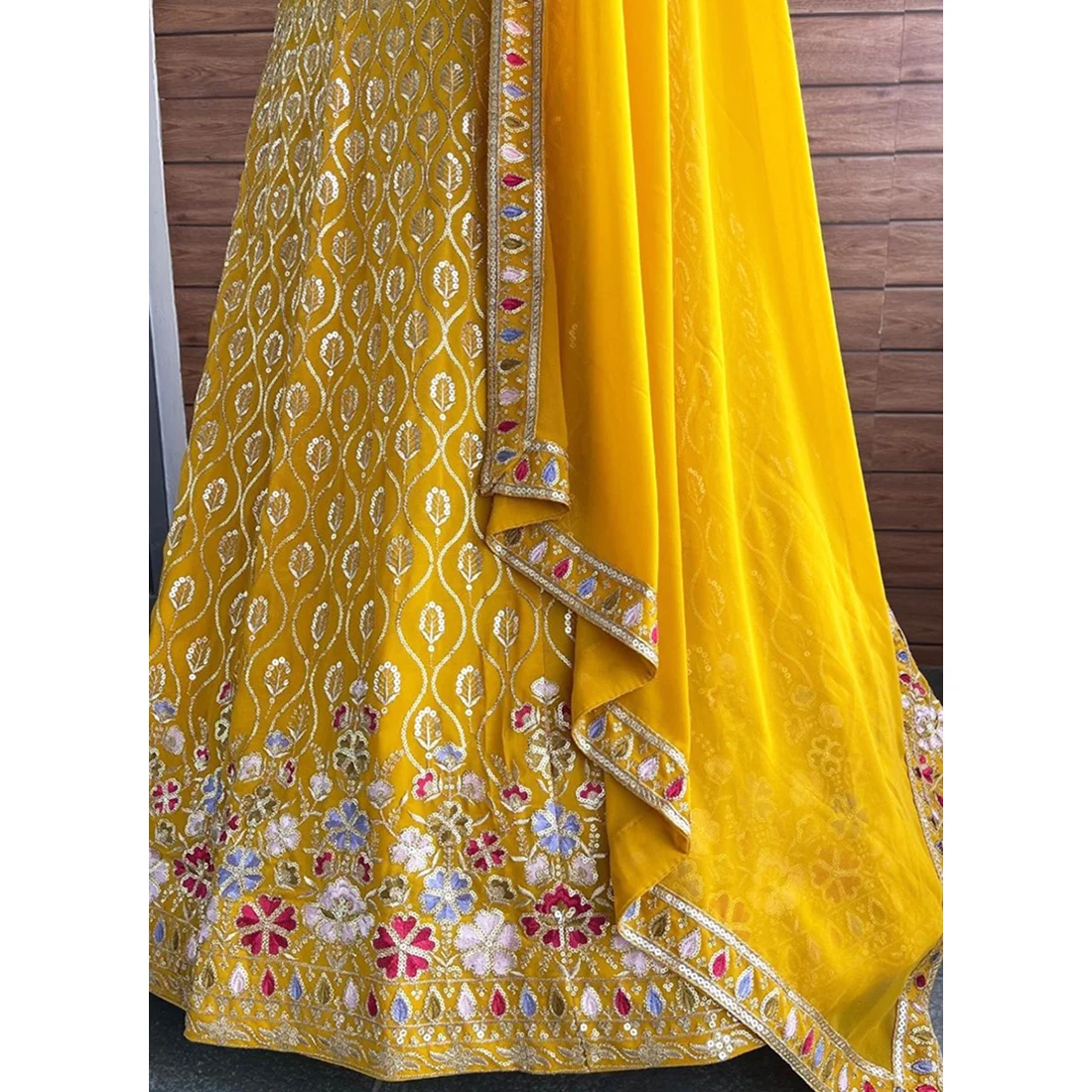 Yellow Georgette Lehenga Choli with Embroidery Work Party Wear Prom Dresses