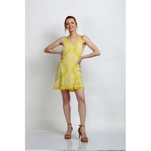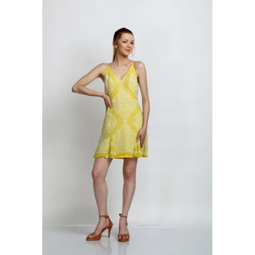 Product Name: Yellow Halter Neck Bodycon Dress Women Trendy Sleeveless Summer Dress Elegant Fit Flare Casual Beachwear Stylish Cocktail Dress