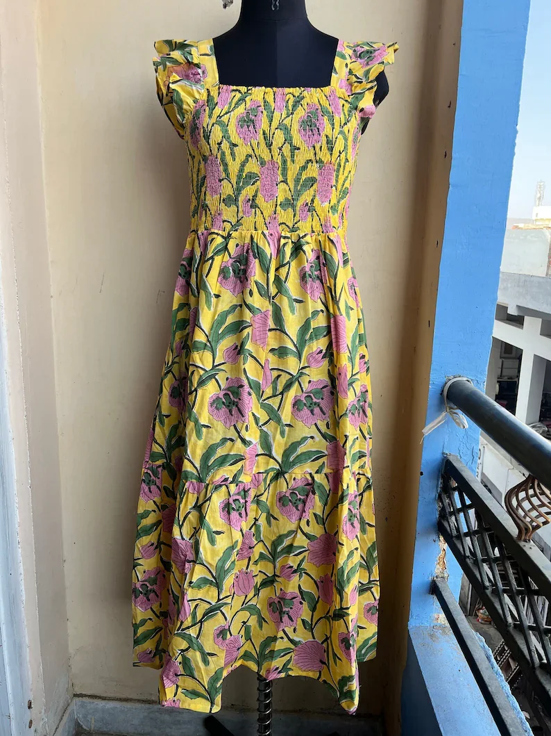 Product Name: Yellow Sleeveless cotton dress summer casual maxi Indian Floral Print summer wear women Sleeveless Cotton Summer Dress