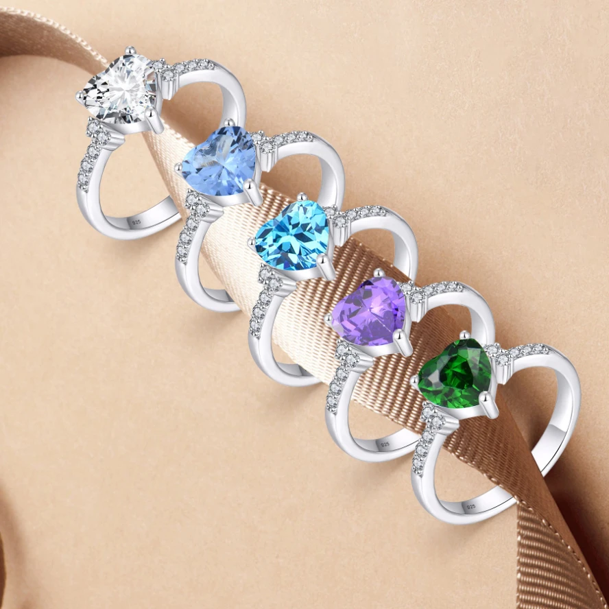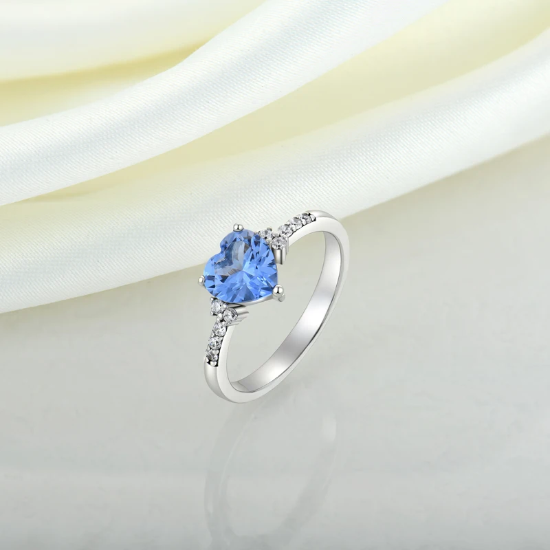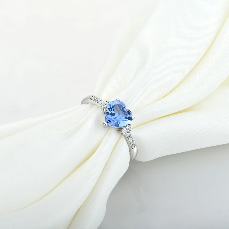 Product Name: YILUN High Quality Woman Silver 925 Sterling Blue CZ Ring Romantic Heart Designer Ring Rhodium Plated Diamond Stone Silver Ring