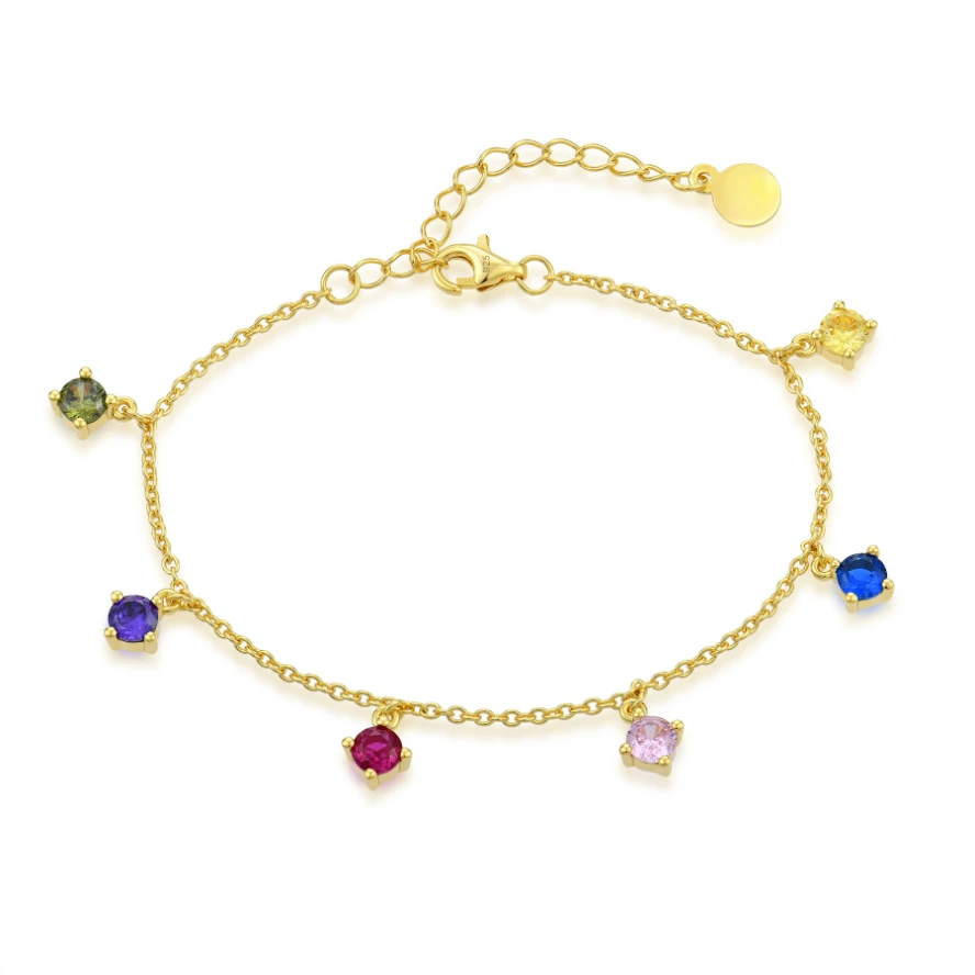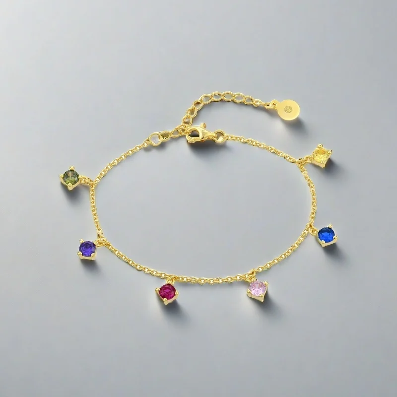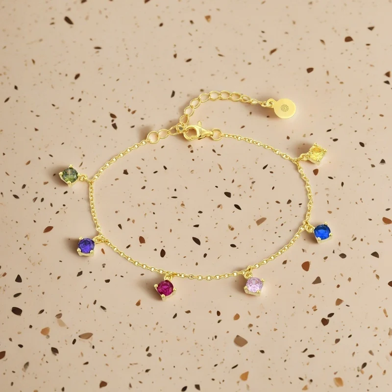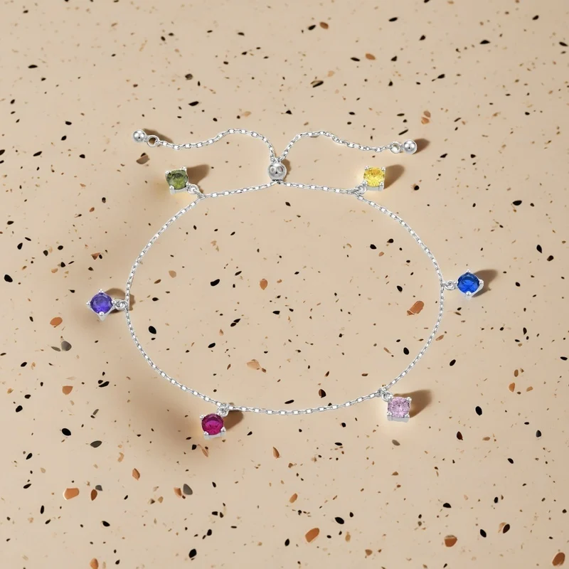 Product Name: YILUN Rhodium Plated Birthstone Bracelet Multicolor Gemstones CZ Ladies Fine Jewelry Sterling 925 Silver Bracelet