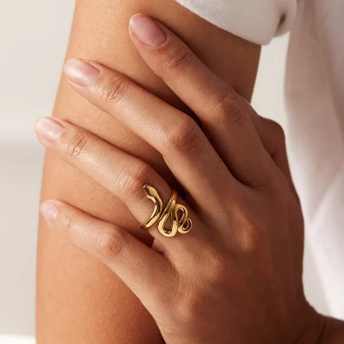YW Fashion Women’s Geometric Chain Cross Opening Ring 18K Gold Plating Stainless Steel Jewelry Trendy Style