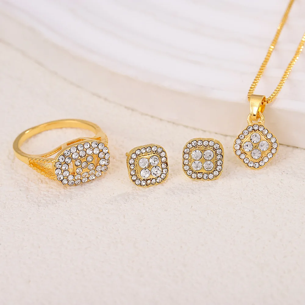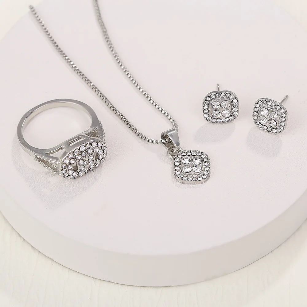 YW Fashionable and Simple Necklace Ring Earring 3-Piece Set Alloy Material Jewelry Sets for Women