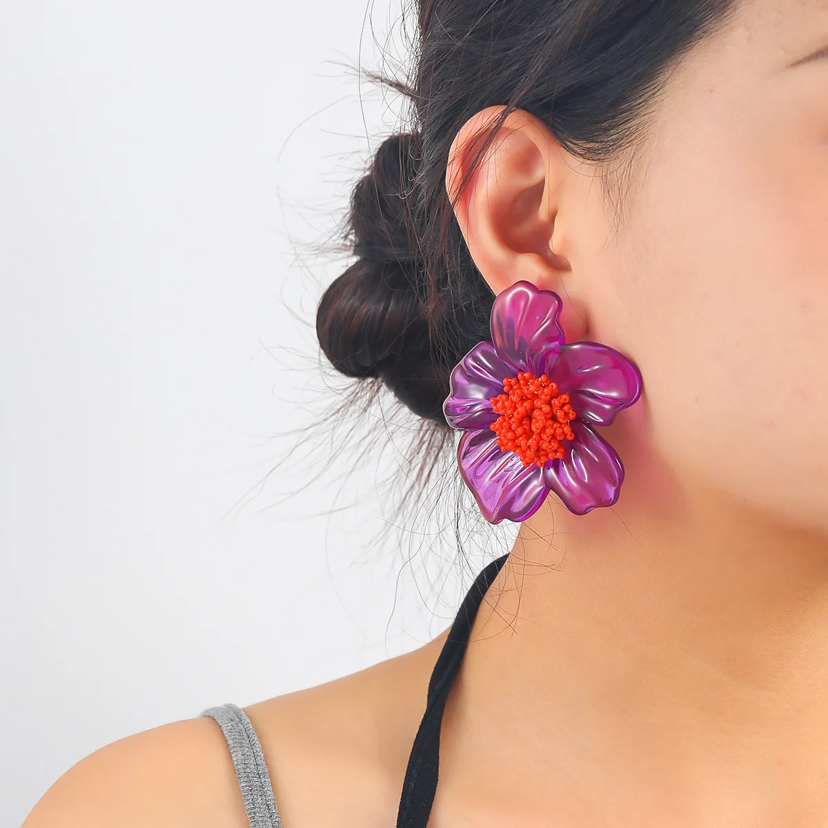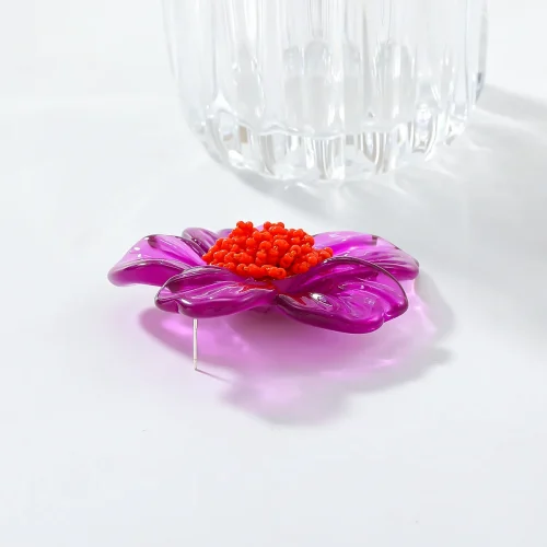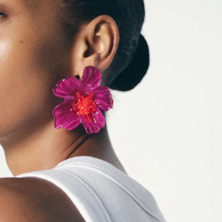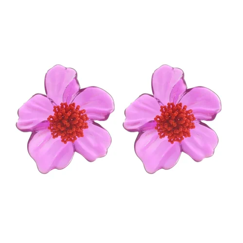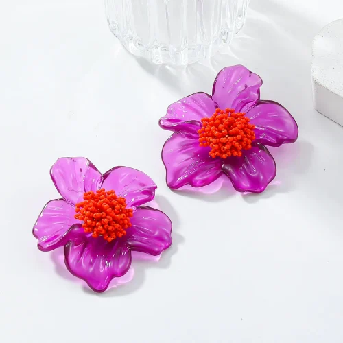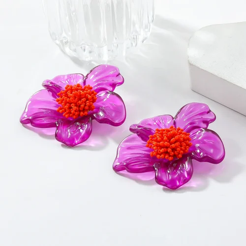 ZA Latest Purple Resin Flower Earrings for Women Bohemian Beaded Floral Jewelry Accessories