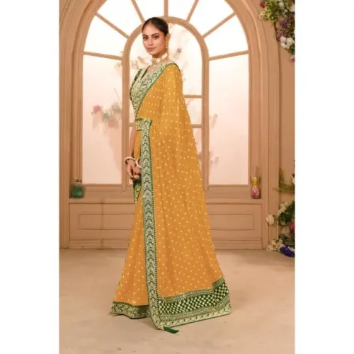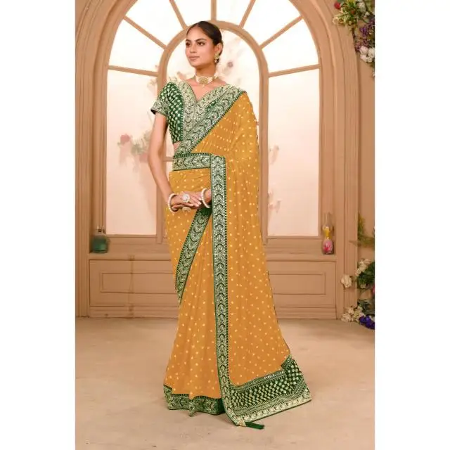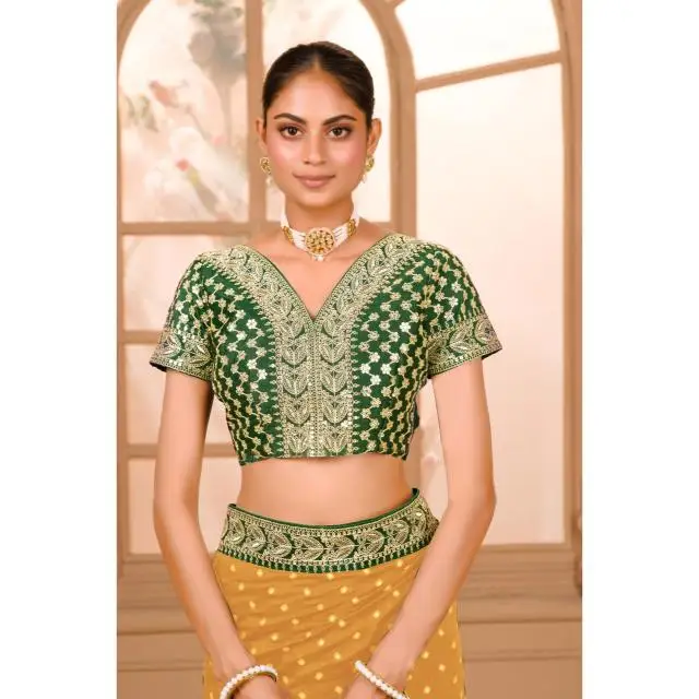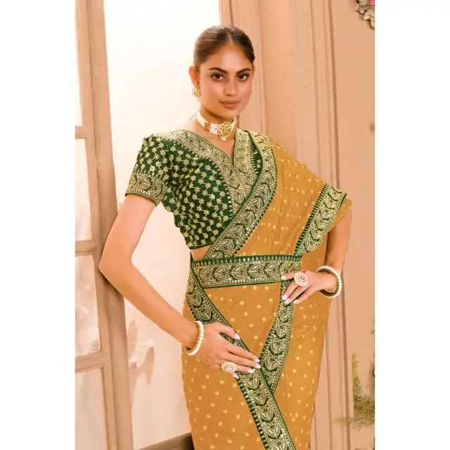Zariwork Designer Saree with Pre-Stitched Blouse Easy Drape Pleated Indian Style for Party Featuring Zari Sequence Work