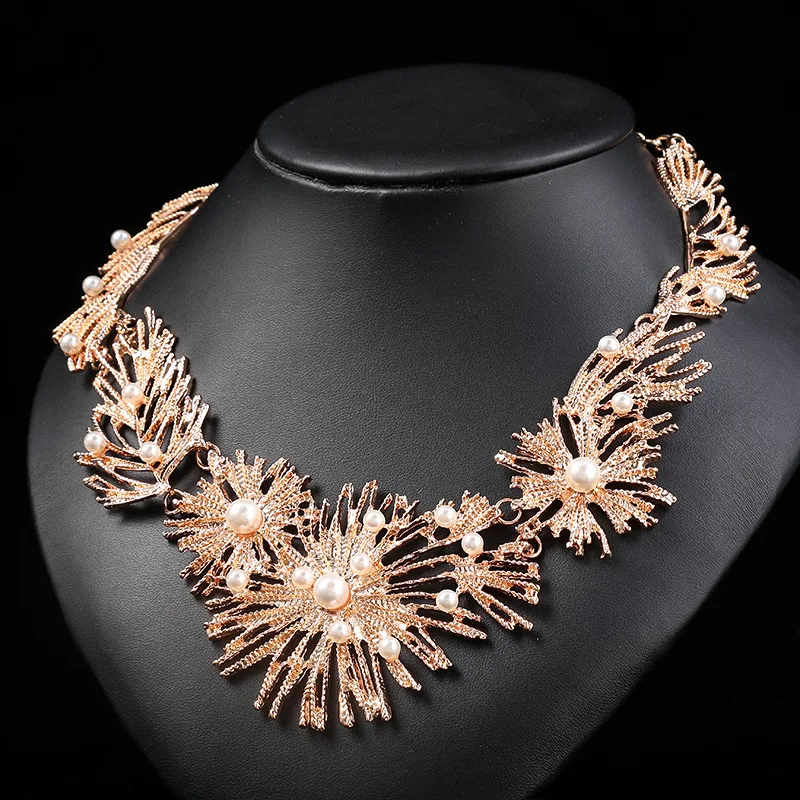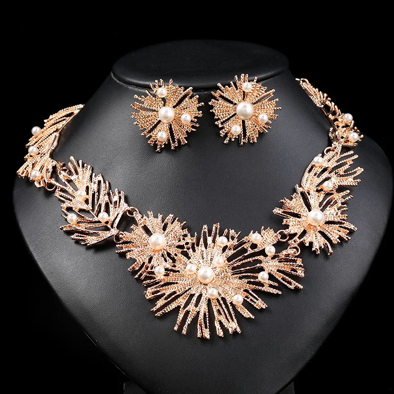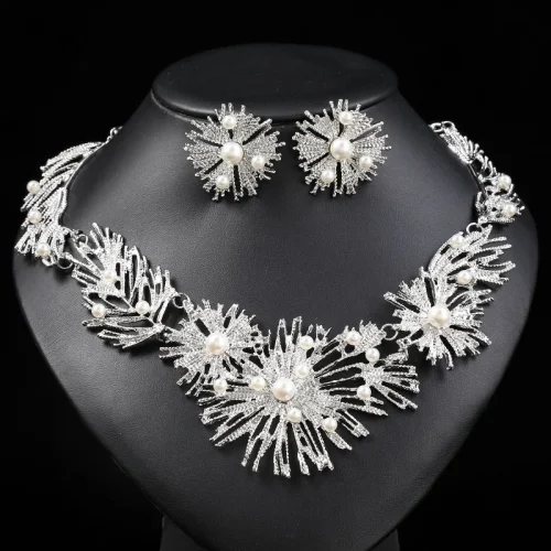 Product Name: ZC085 Fashion Jewelry Set Women Sparkle Necklace Earrings Set With Pearls