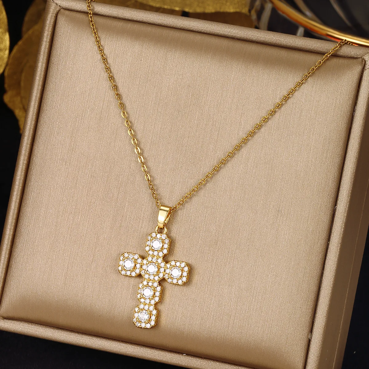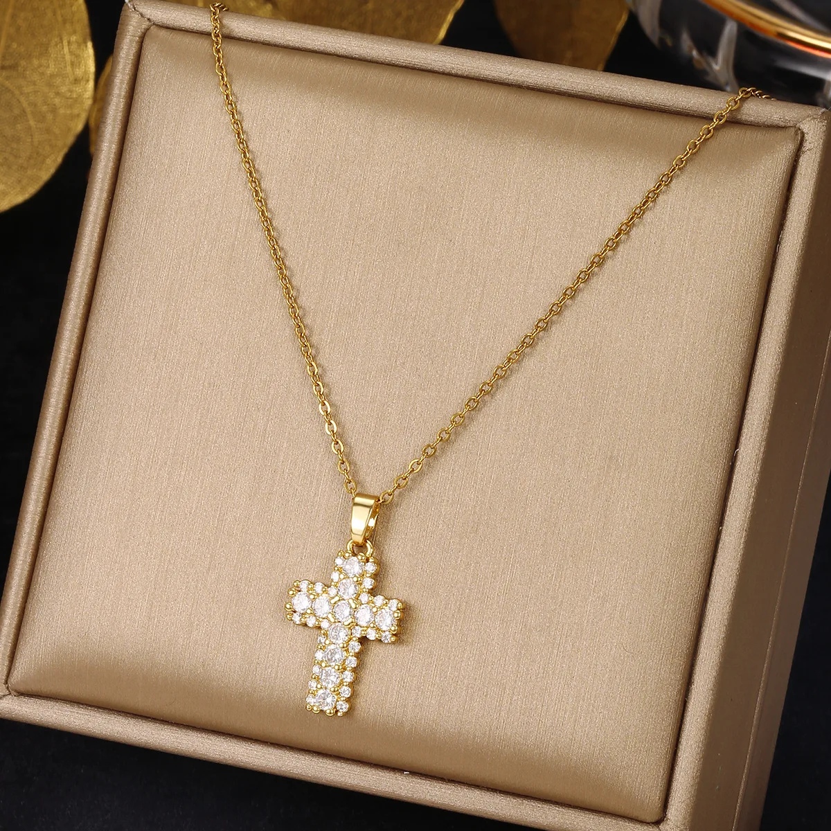 Product Name: ZD Cross Necklace 18K/14K Gold Plated Jewelry Stainless Steel Christian Crucifix Cubic Zircon Necklace Cross