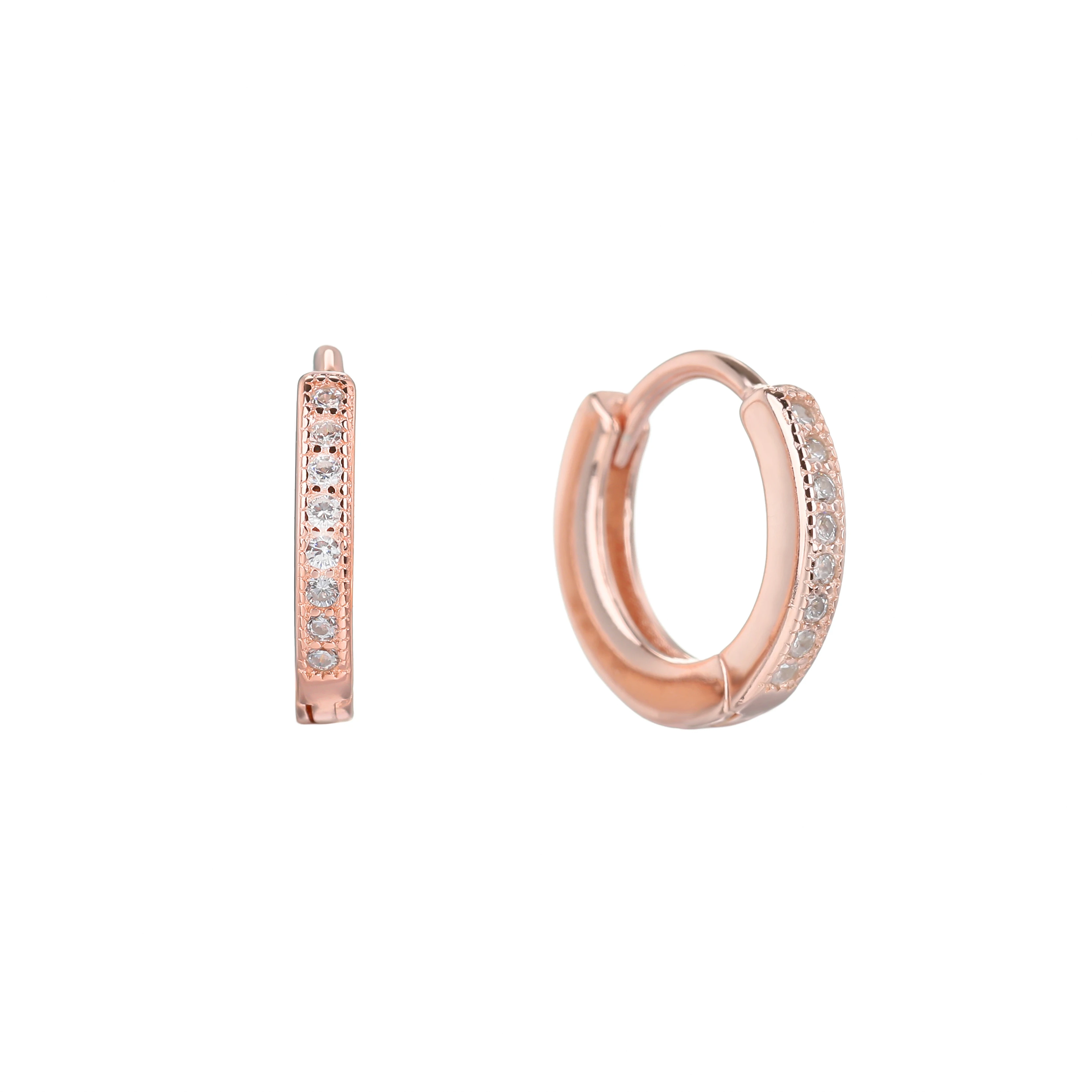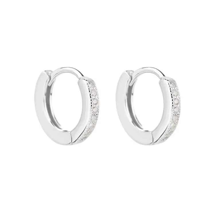 ZHILIAN 1.6g 925 Sterling Silver Round Cubic Zirconia Hoop Earring