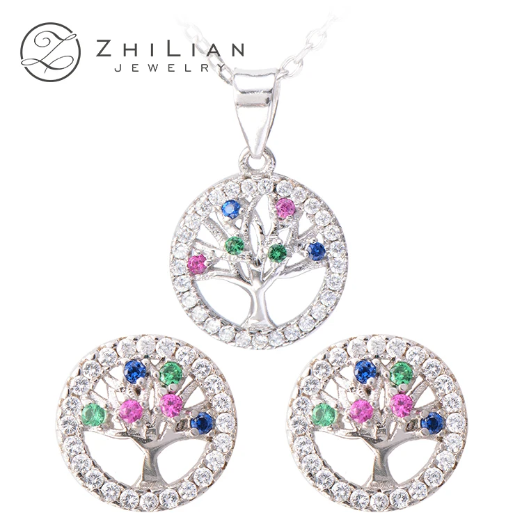 ZHILIAN Colourful Jewellery Set With Colourful Cubic Zircon Jewelry Bridal Diamond Necklace Set