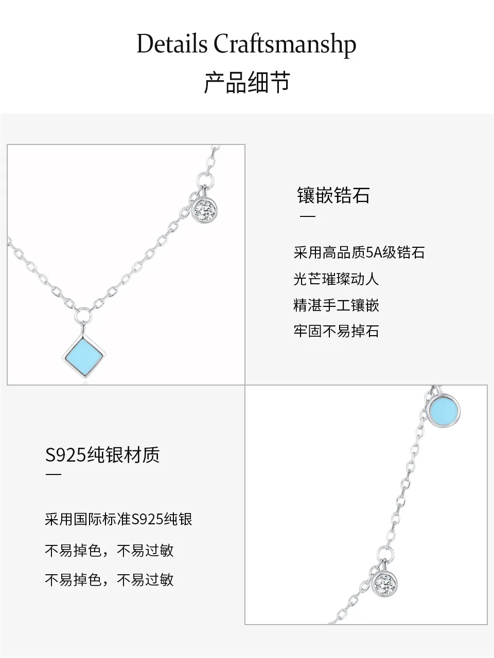 Product Name: ZHILIAN Fine Jewelry S925 Sterling Silver Necklace Enamel Zircon Pendant Necklace for Women