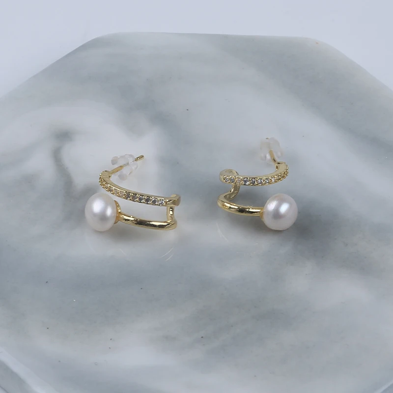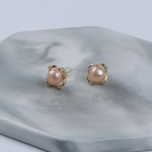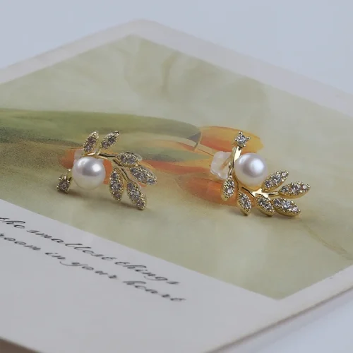 Product Name: Zhuji Classic Natural Freshwater Gold Pearl Earring Diamond New Design Wedding/Party/Engagement Gift Women Religious Number