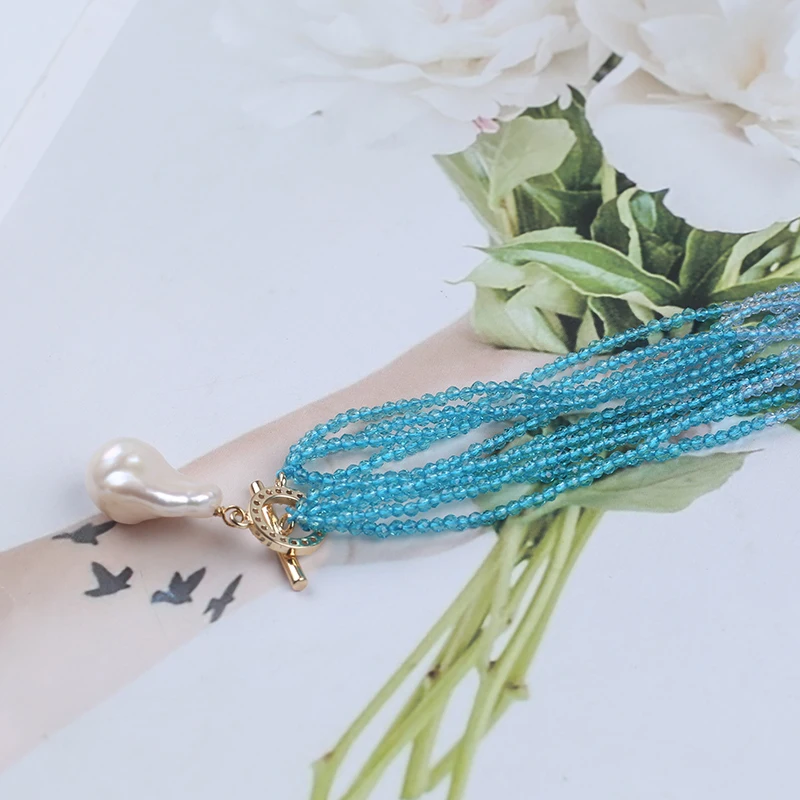 Product Name: Zhuji New Design Crystal 11-12mm 13-14mm Baroque Pearl Pendant Necklace for Wearing