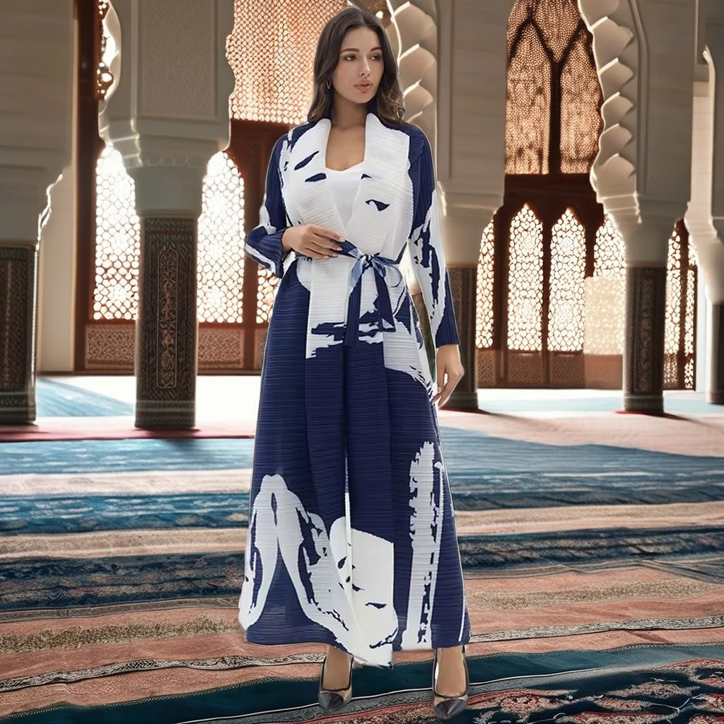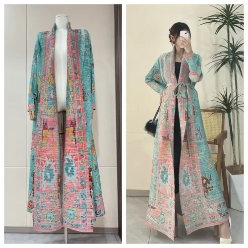 Product Name: ZiFeng Miyaki Dress Pleated Autumn and Winter New Printed Cardigan Muslim Women’s Outer Shawl Dress