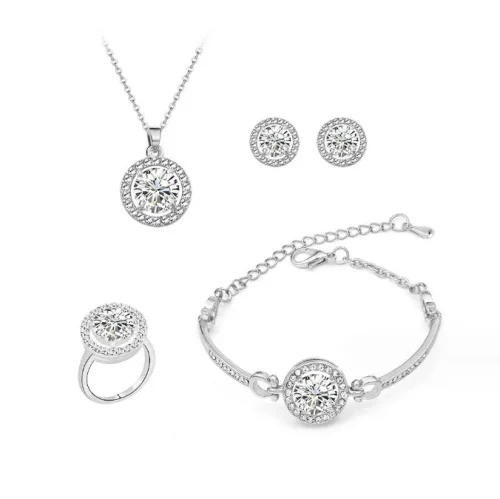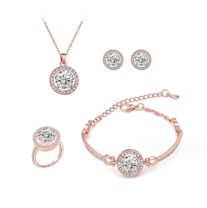 Product Name: Zircon Jewelry Necklace Bracelet Ring Earrings Set Women Gold Silver Rose Gold Crystal Jewelry