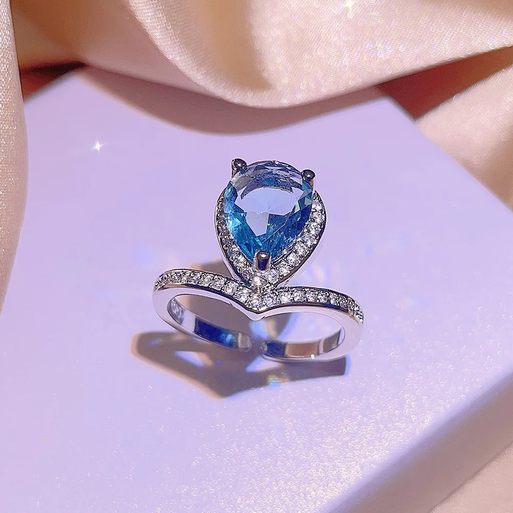Zooying Beautiful Women’s Necklace Ring Earrings Jewelry Set with Sapphire Zircon
