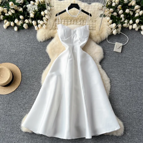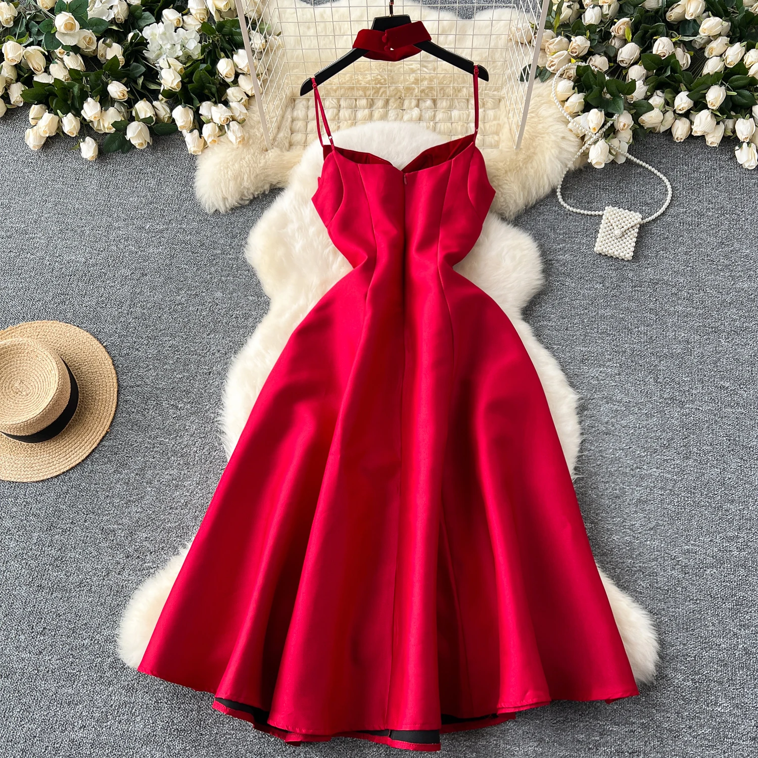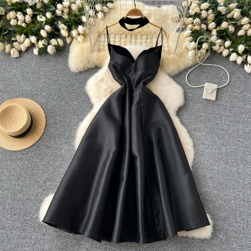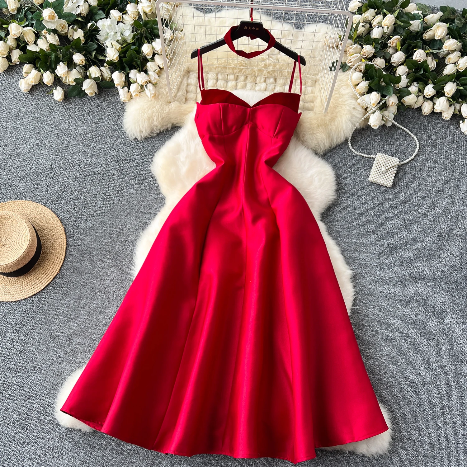 ZT1472 French Womens Dresses Luxury Socialite V-neck Halter A-line Pompon Dress Senior Sense Maxi Dress Evening Gown