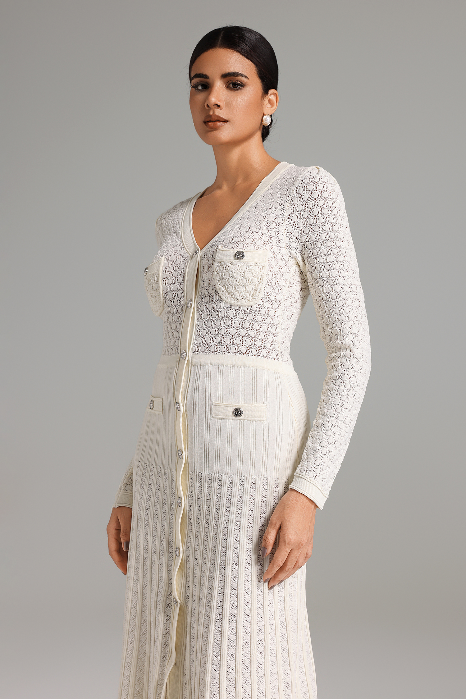 Zuelia Button Placket Knitted Dress