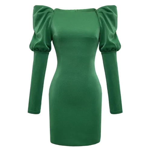ZYHT 10044 2025 Spring New European and American Style Dress Green Puff Long Sleeves Slim Fit Hip Short Dress