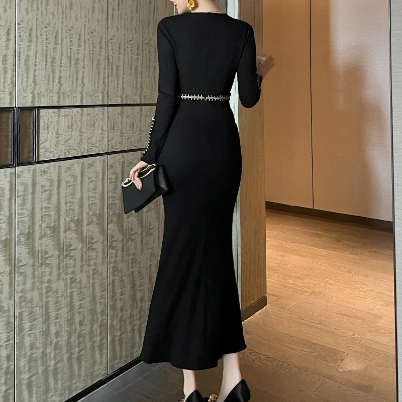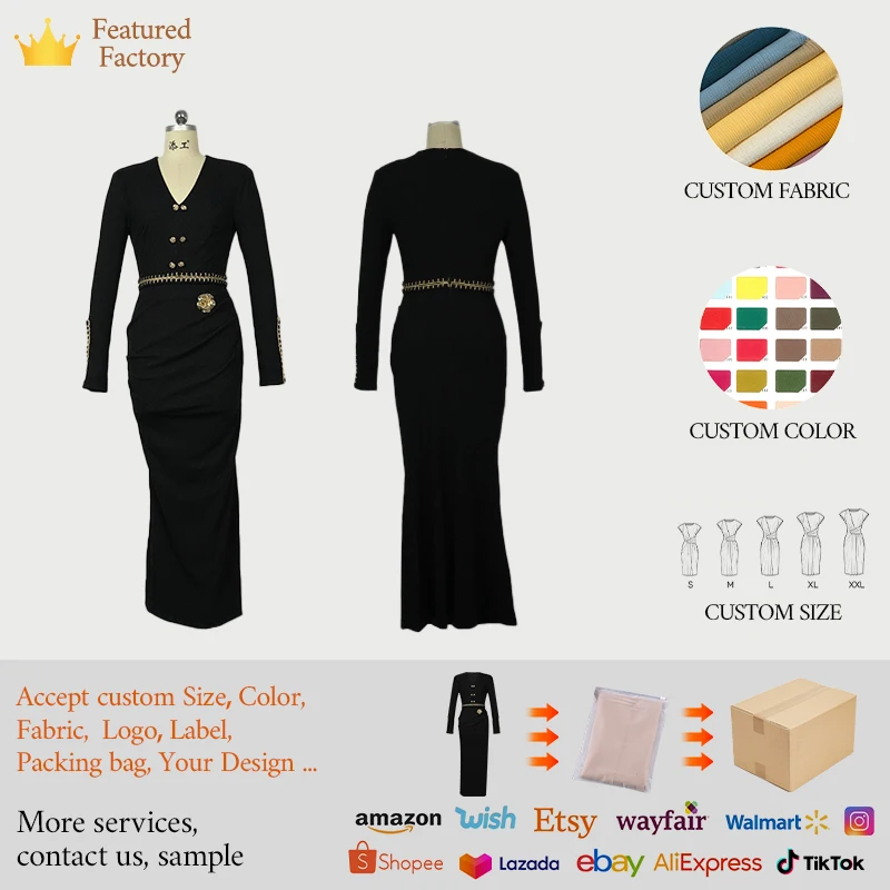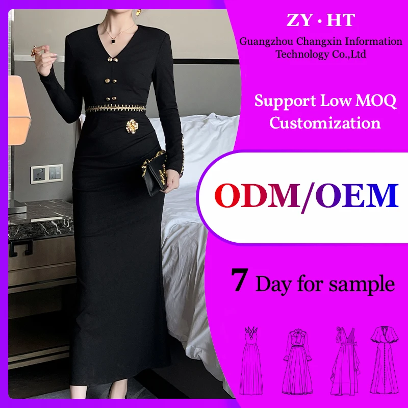 ZYHT 21611 Casual Dresses Breathable Polyester Sexy Metal Zipper Solid Back Day Sustainable Black Stretchy Long Dress for Women
