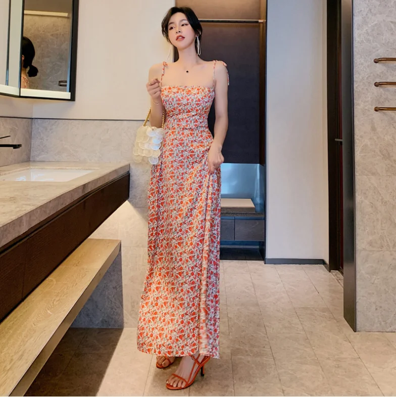 Product Name: ZYHT 3886 Holiday Women Floral Maxi Dress Backless Beach Dress Sexy Casual Long Printed Dresses