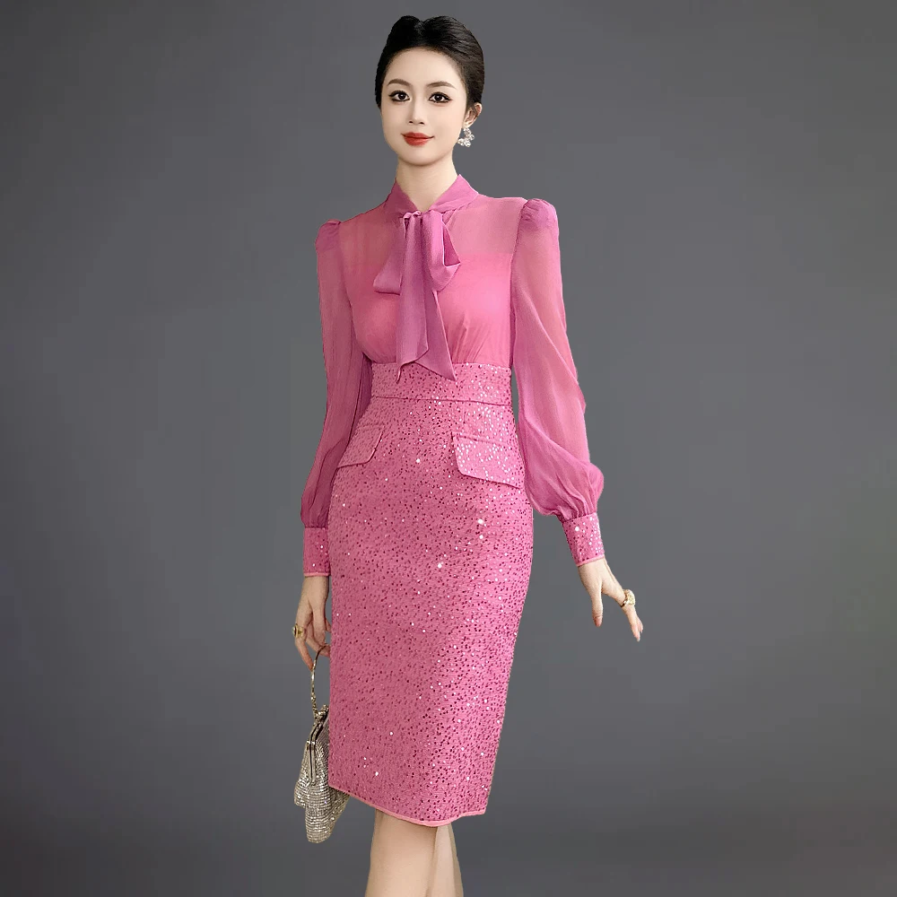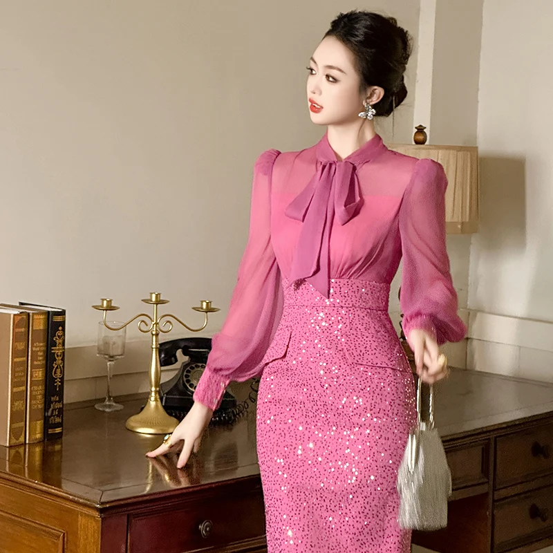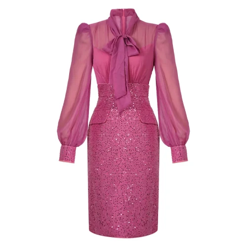 ZYHT 50779 Trending Beautiful Sequins Senori Casual Party Office Clothes Dresses Women Formal Work Elegant for Ladies