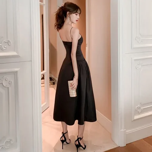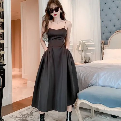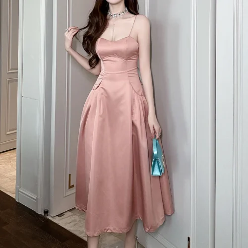 ZYHT 6035 Tank Sleeveless Backless Casual Summer Puffy Sexy Satin Sun Dresses for Women