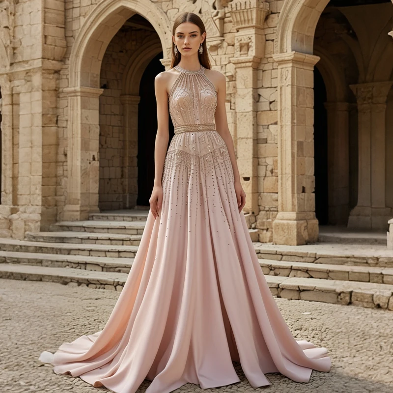Product Name: ZYHT 73048 A-Line Evening Dresses Floor-Length Formal Sequins Beaded Halter Satin Gown Formal Wedding Guest Dress for Women