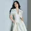 ZYHT 73063 A-Line Satin Evening Knee-Length Beading Prom Dress with Natural Waistline Crystal Decoration Short Party Dresses