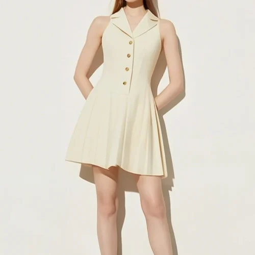 Product Name: ZYHT 74007 Summer Office Wear Women’s Chic Beige Blazer Dress Single Button Slim Waist Short Casual Suit Dress